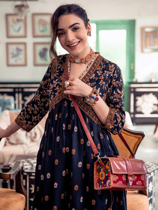 Off White Multicoloured Tiered Dress With Polka Prints And Gota Details