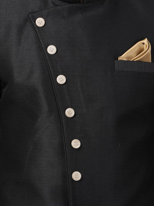 Men Black & Gold-Toned Solid Silk Sherwani With Dhoti Pants