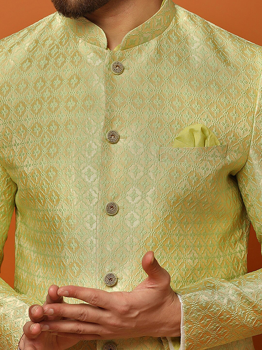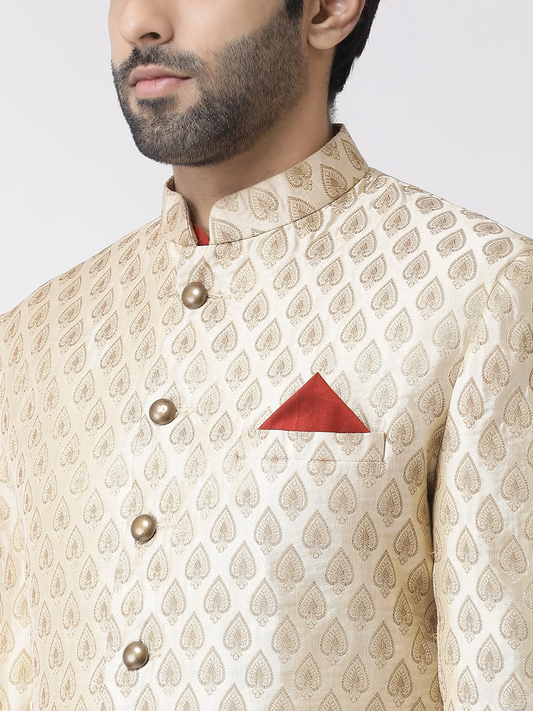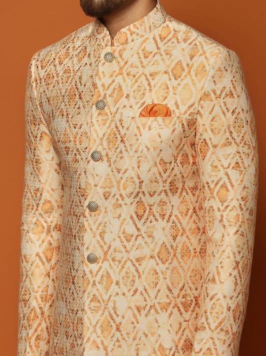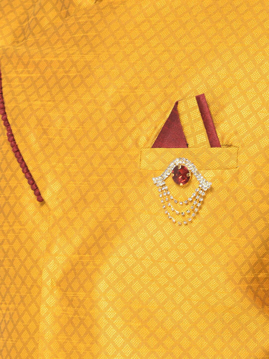 Men Yellow & Maroon Sherwani Set With Anchkan