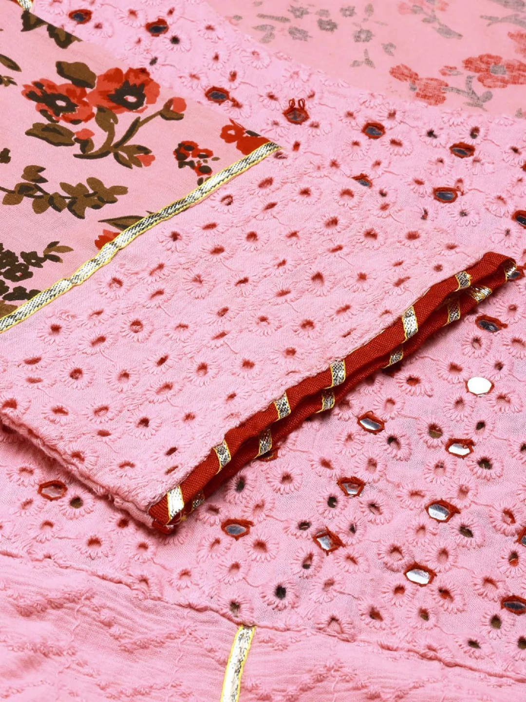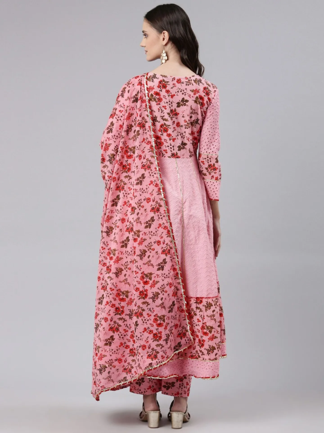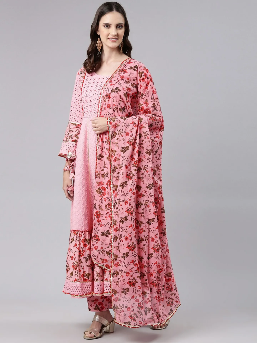 Revamp your closet with this set by Readiprint Fashions. Made with the finest material, it features a kurta that has a round neck and three-fourth sleeves. The mid-waist bottoms have a straight-leg silhouette. The dupatta brings the entire outfit together. Style this set with earrings and mules to complete the look.