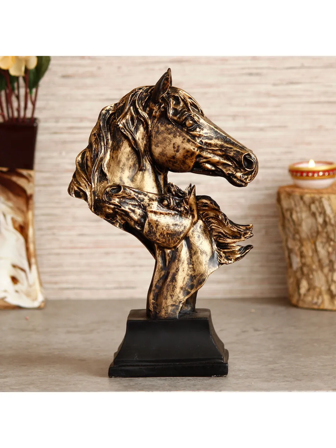 Enhance your home with eCraftIndia Antique Finish Horse Couple Face Handcrafted Polyresin Decorative Showpiece which reflects the artistic brilliance and adds elegance to your home or office decor. Style your home and office with this contemporary decorative that is sure to be admired by your guests. It also serves as a great gift option, especially when it comes to celebrations and festivities. This handicraft item has been made by skilled artisans at the house of eCraftIndia using various ancient techniques.