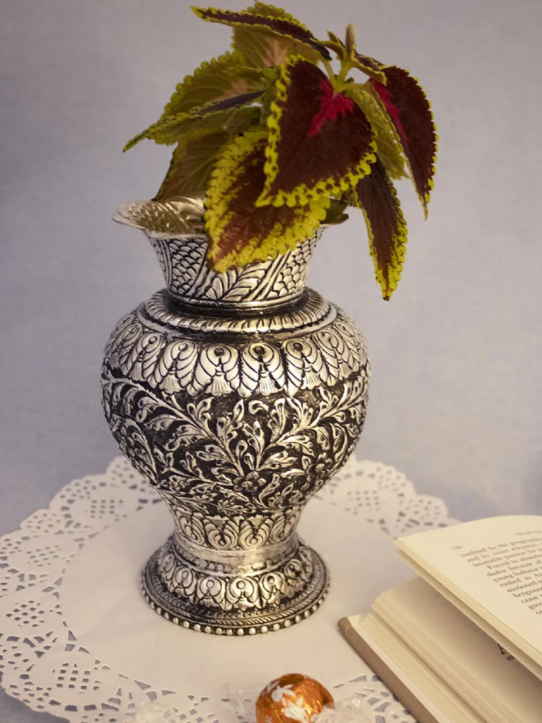 Add a dash of vintage to your home with this antique silver-plated vase by Assemblage. This vase shows off the traditional craftsmanship of the artisan. It has an intricately hand carved design with pure silver plating that suits every ambience and is perfect for gifting.