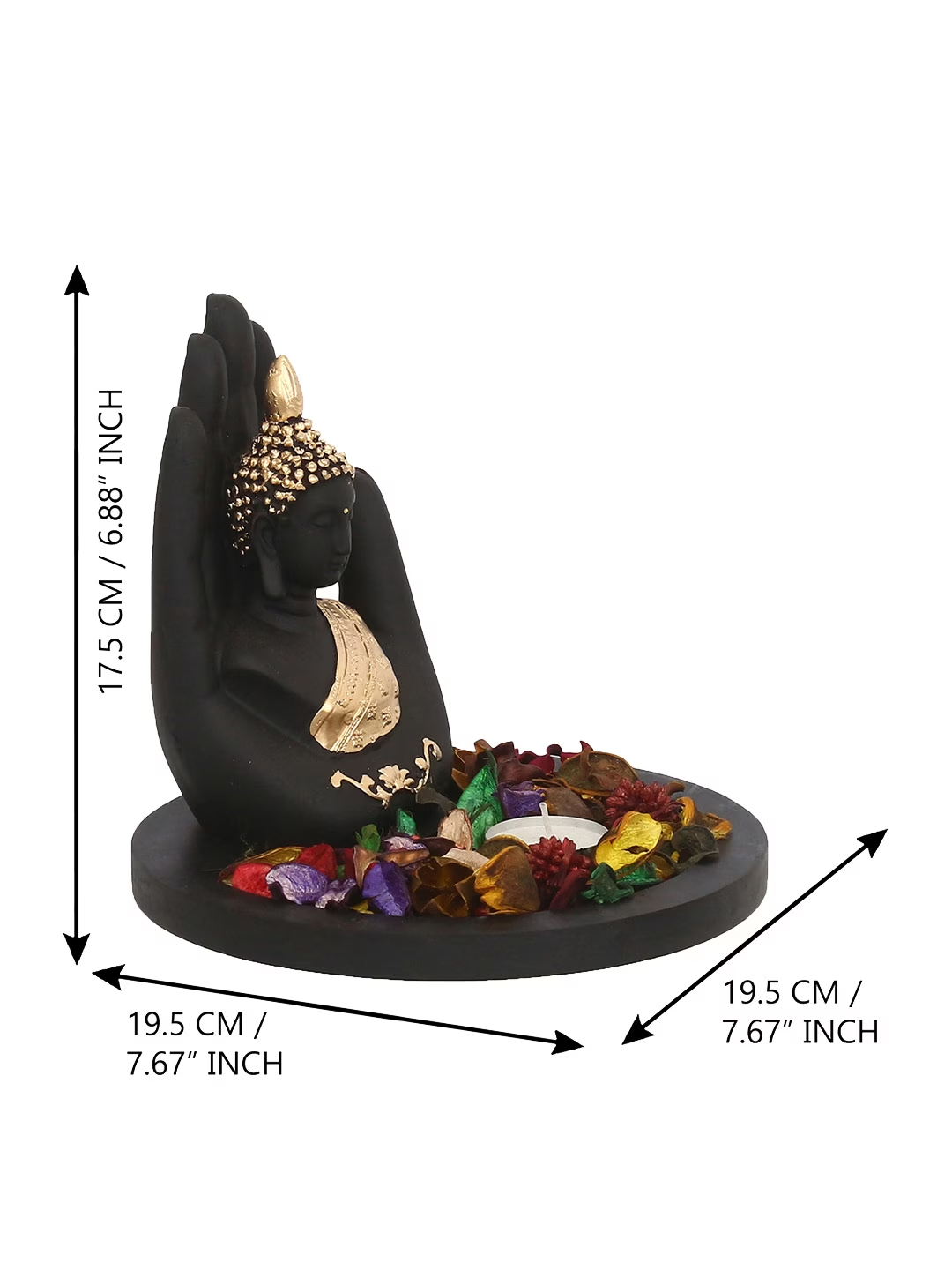 - Type: Palm Buddha With Fragrant Petals and Tealight Showpiece