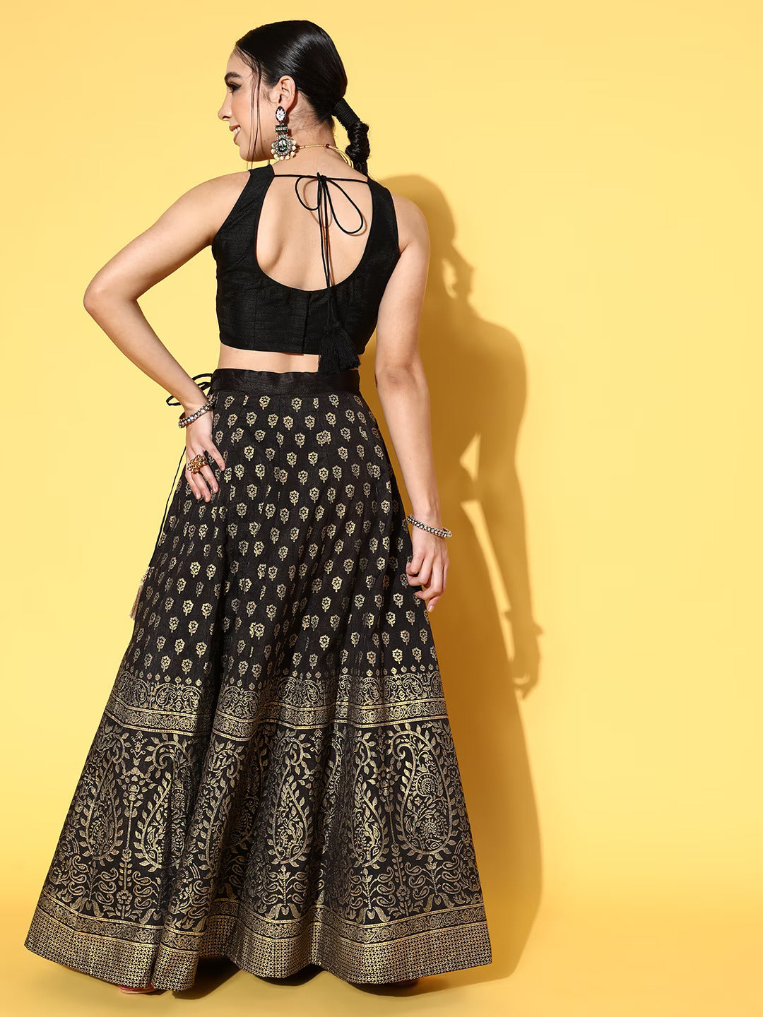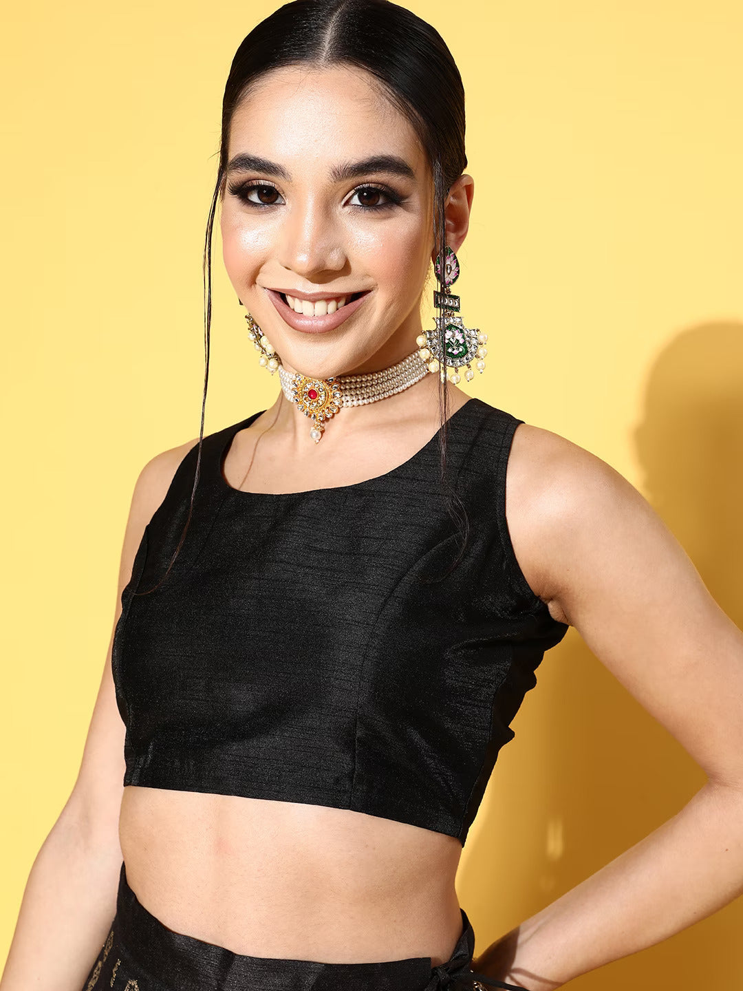 Showcasing elegance, this lehenga choli is perfect for all your special events. Expertly crafted with a round neck and flared bottom, this lehenga choli will give you a royal look.