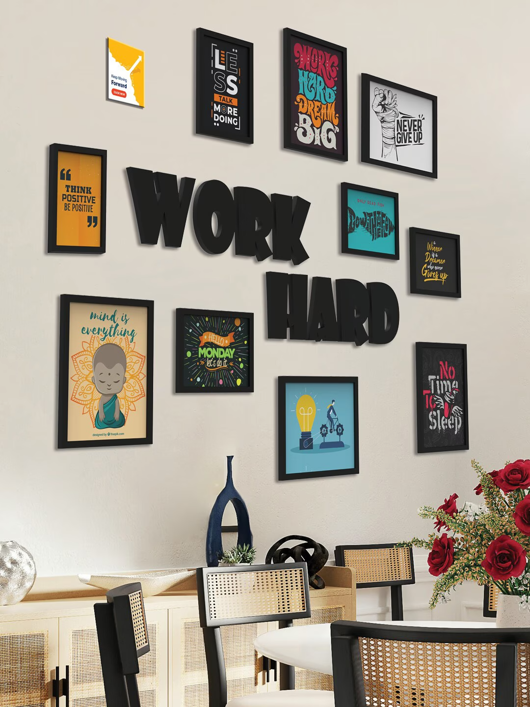 - Set of 10 3D Collage Photo Frames With WORK HARD Plaque