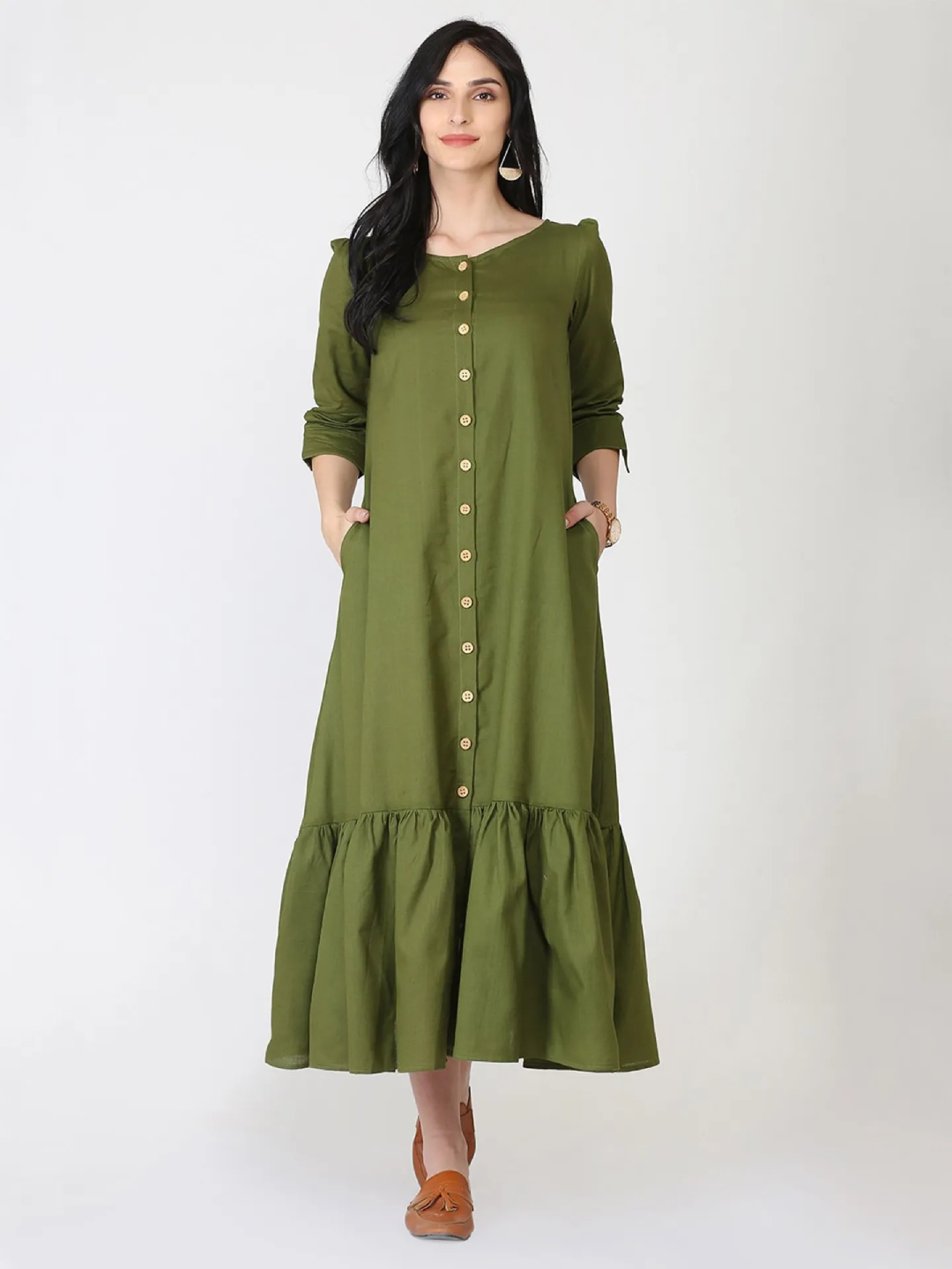 From our comfort edition, comes this Cotton Linen tall Maxi made especially for our Indian women. Comfortable Cotton linen with pockets and the breezy silhouette makes it a perfect ensemble for any casual day. Wear it as a dress or open the buttons to use it as a summer jacket. Its customisable, by you.