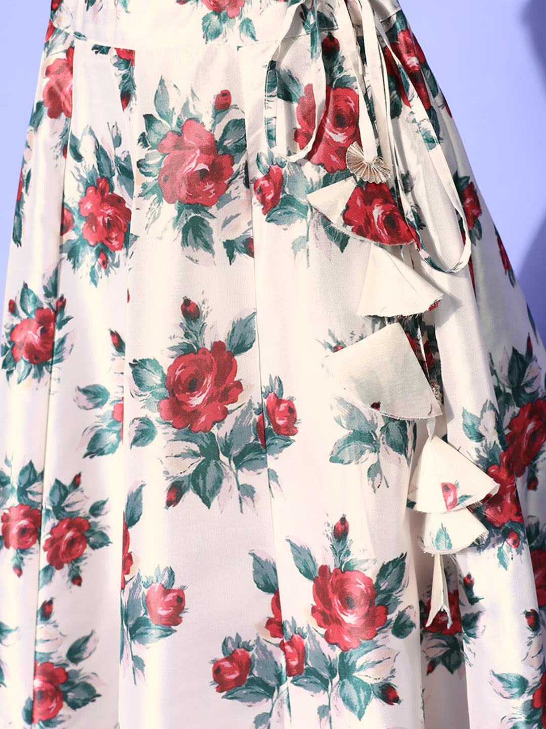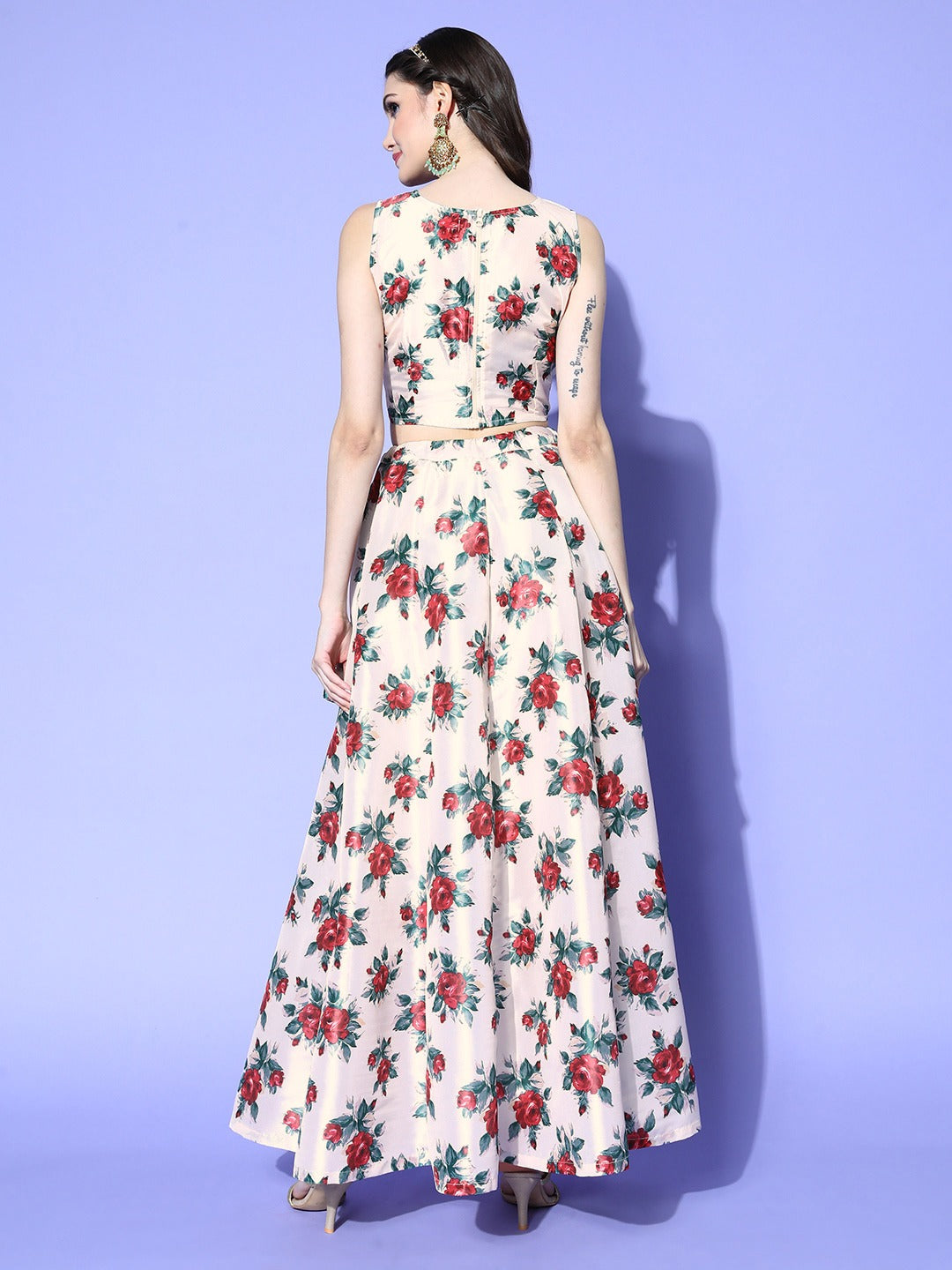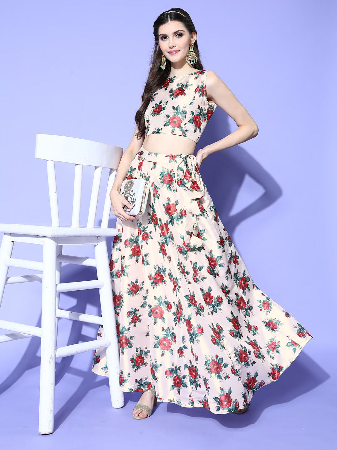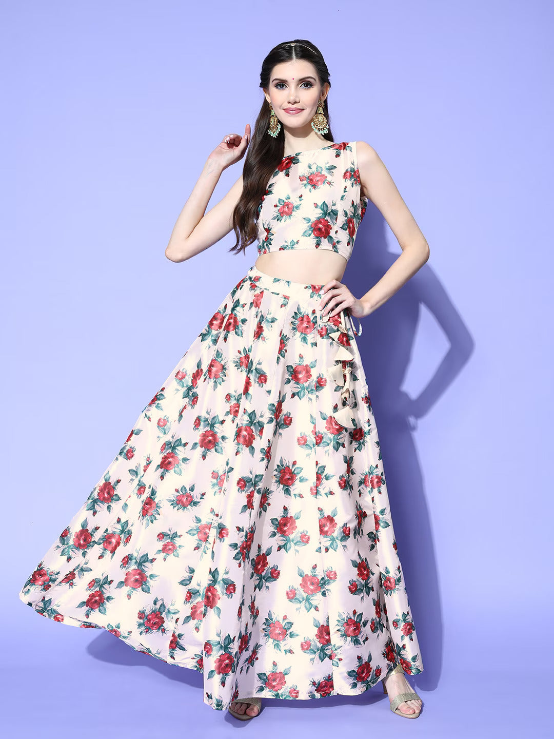 Bring your dream look to life with this fashionable lehenga choli. Impeccably crafted with a round neck, this lehenga choli also includes a beautiful flared bottom.