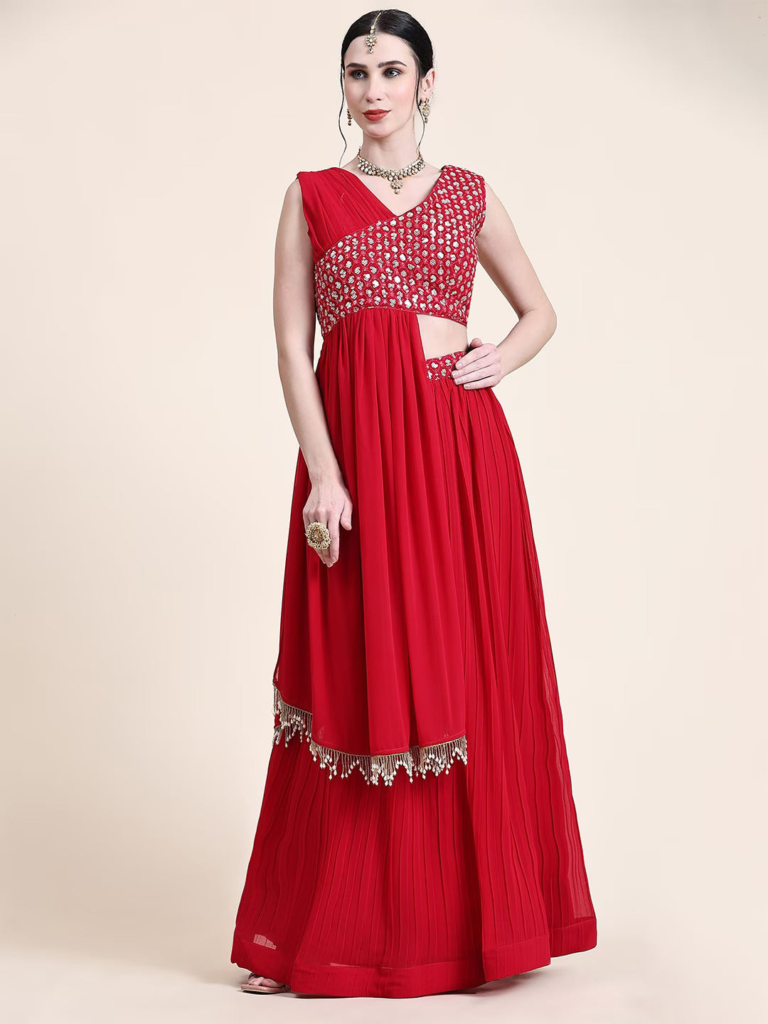 - Lehenga fabric: Poly Georgette