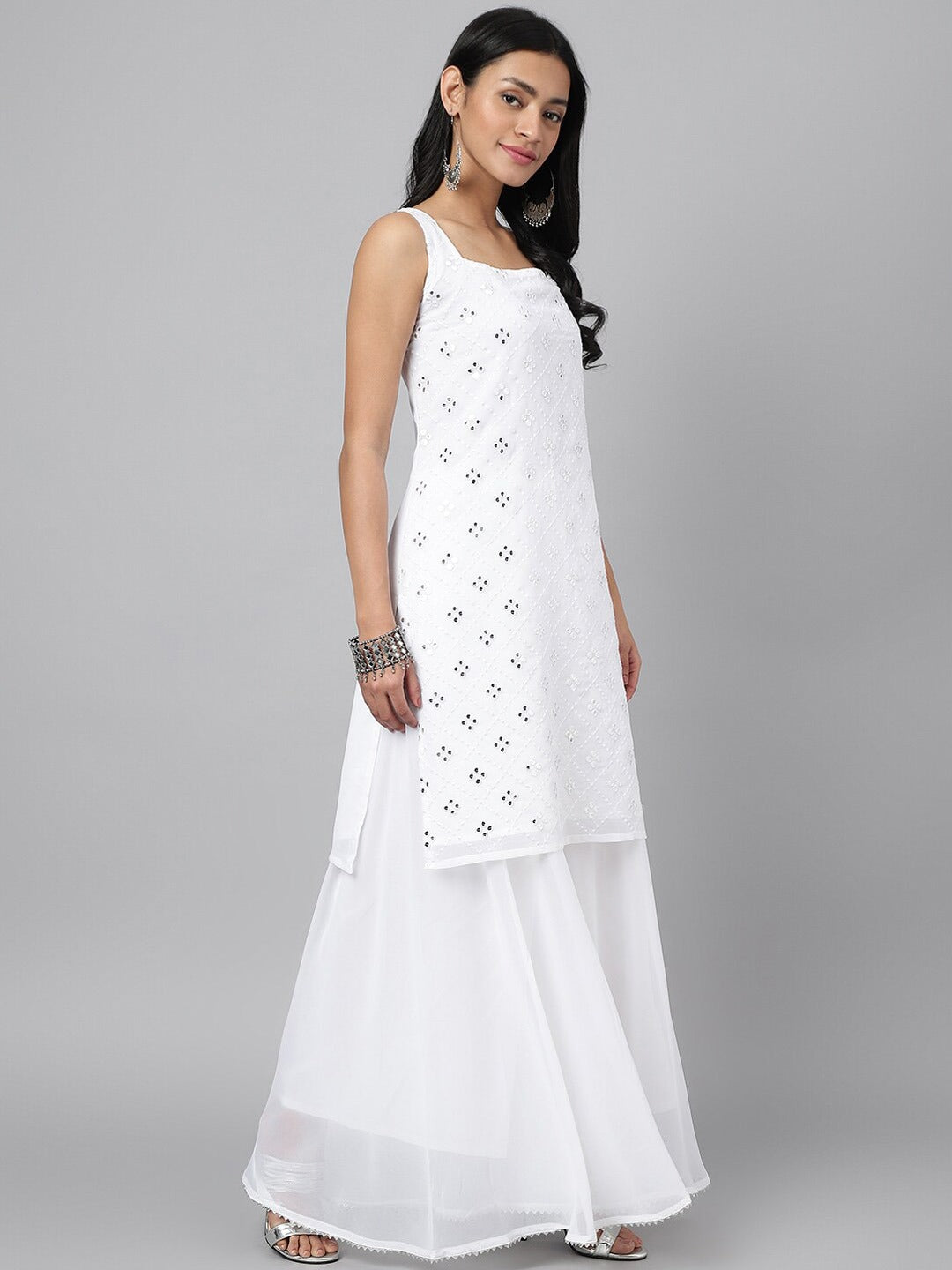 White embroidered Kurta with Sharara with dupatta