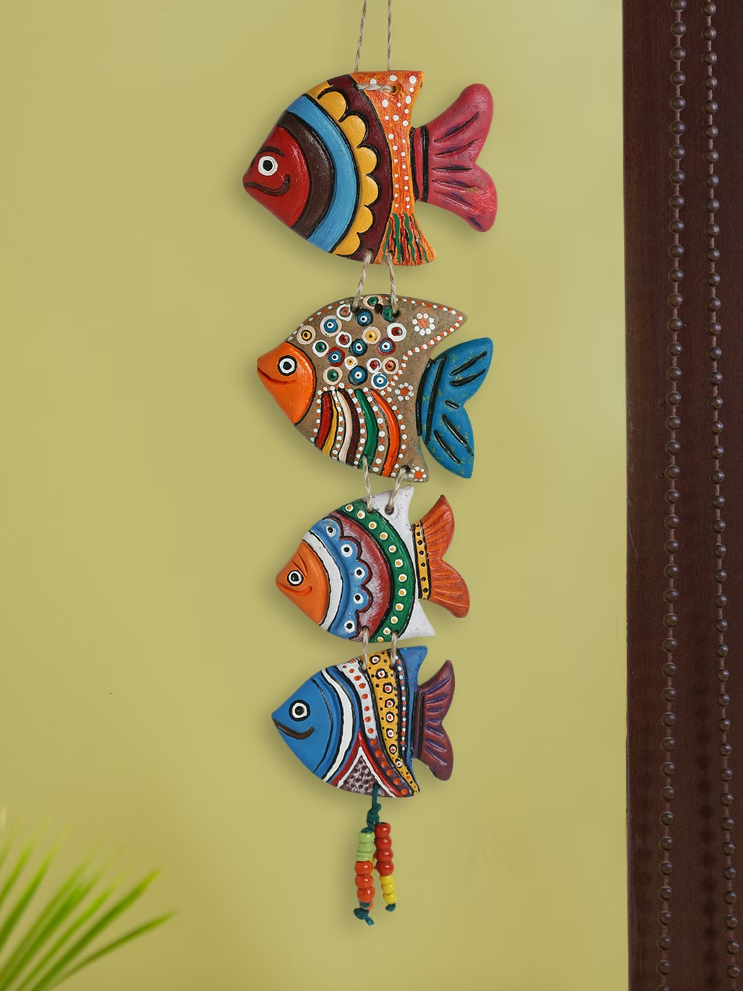 - Handmade and Handpainted in Terracotta in the shape of fish.