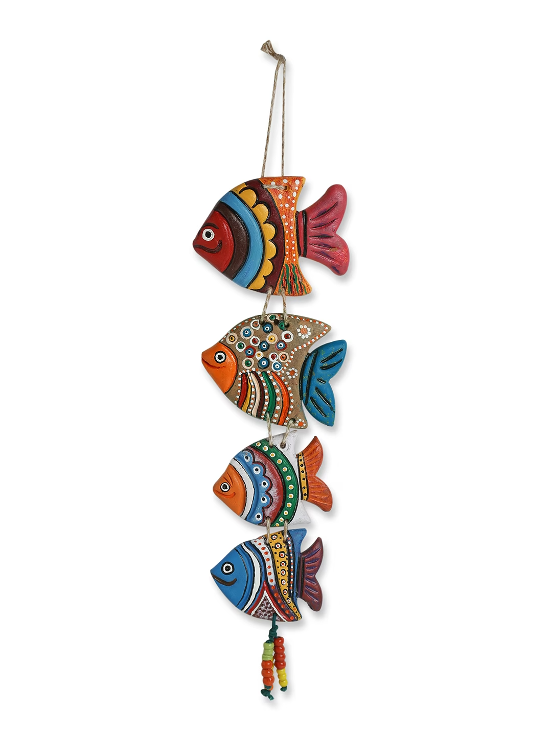 - Handmade in the shape of a fish family with unique traditional patterns.