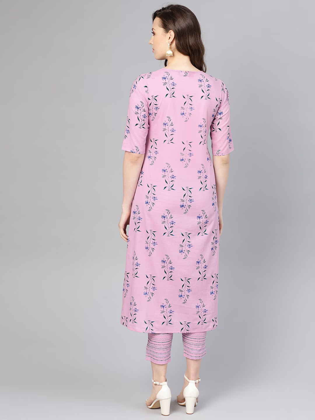 A smart piece with a floral trend signature, the contemporary styling components ups the exclusivity of this set. The shades of taffy pink beautifully contrasts with the luxe blue floral motifs, while the structured silhouette gives it a casual edge. Design, comfort and a smart overall look, this set is elegance personified!