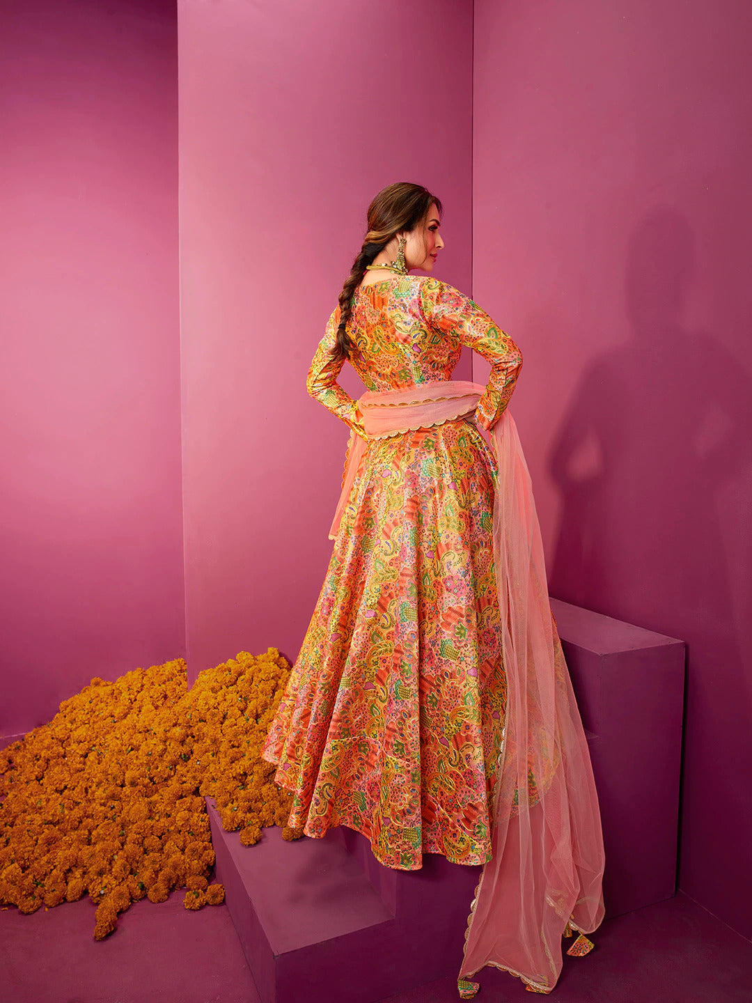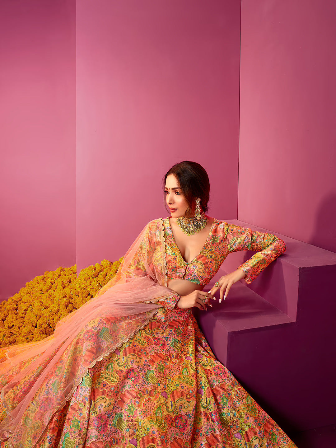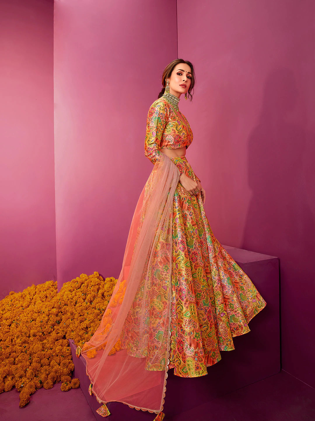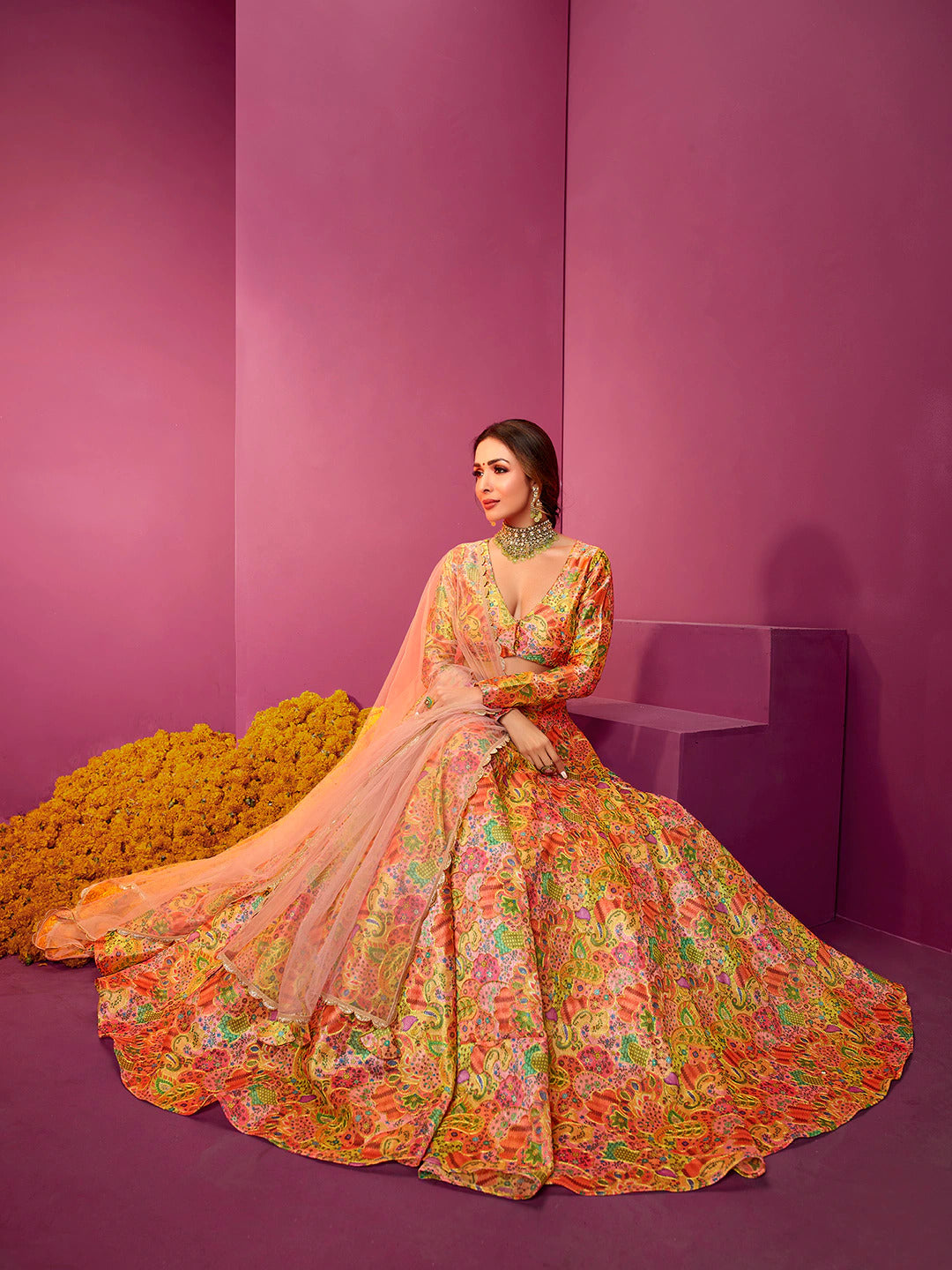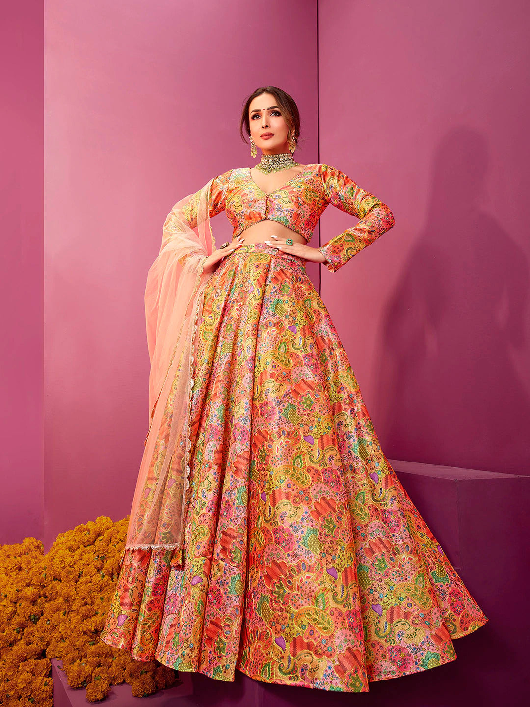 - Lehenga: Silk Blend with Shantun Inner: 4.5 mtrs