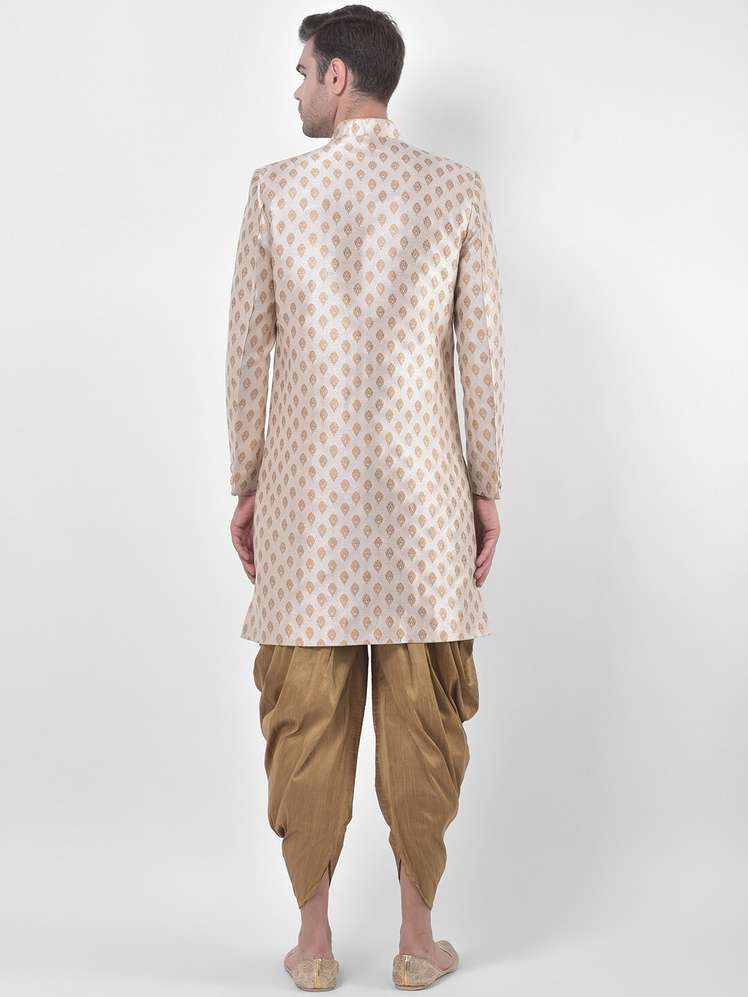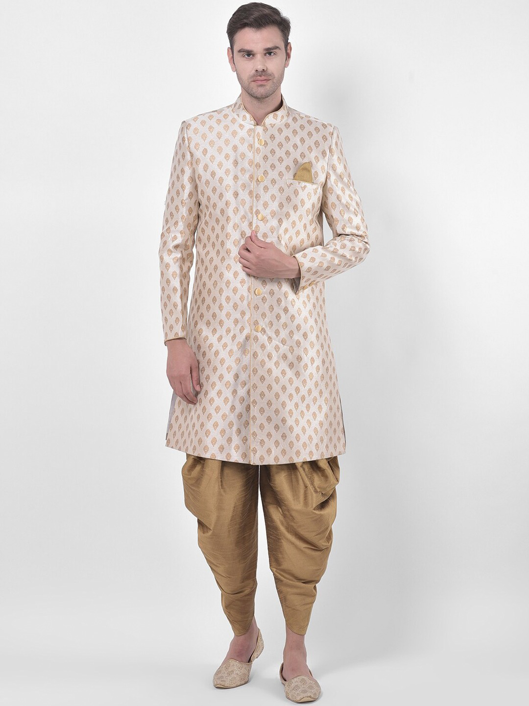 - Cream and brown regular-fit sherwani set consists of Sherwani and Patiala