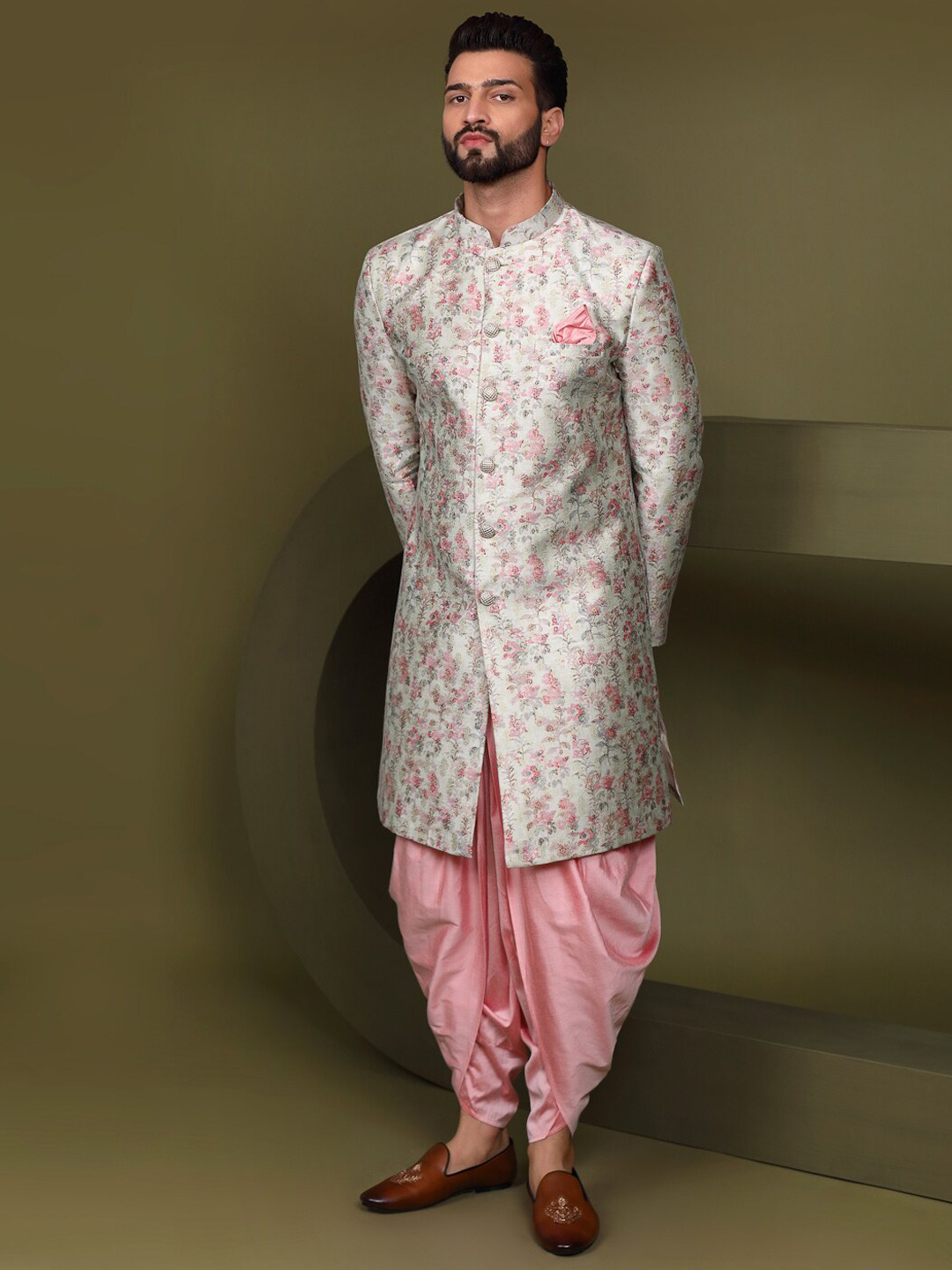 - Grey Woven Design sherwani set