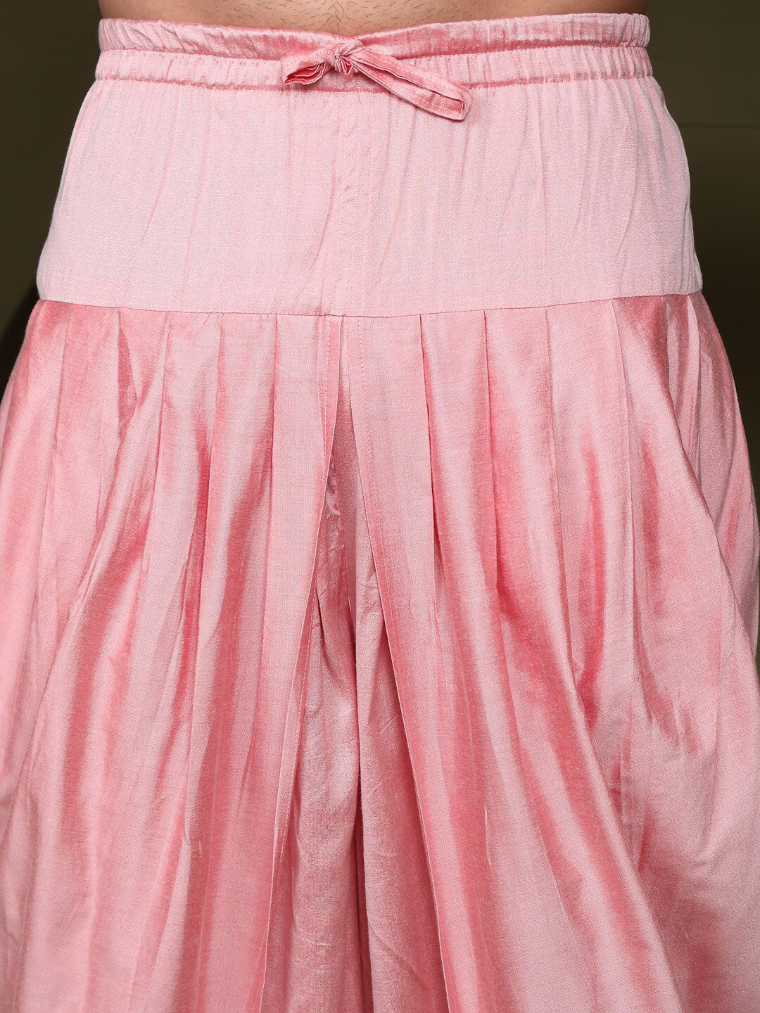 - Pink solid dhoti pant, has an elasticated waistband with drawstring closure