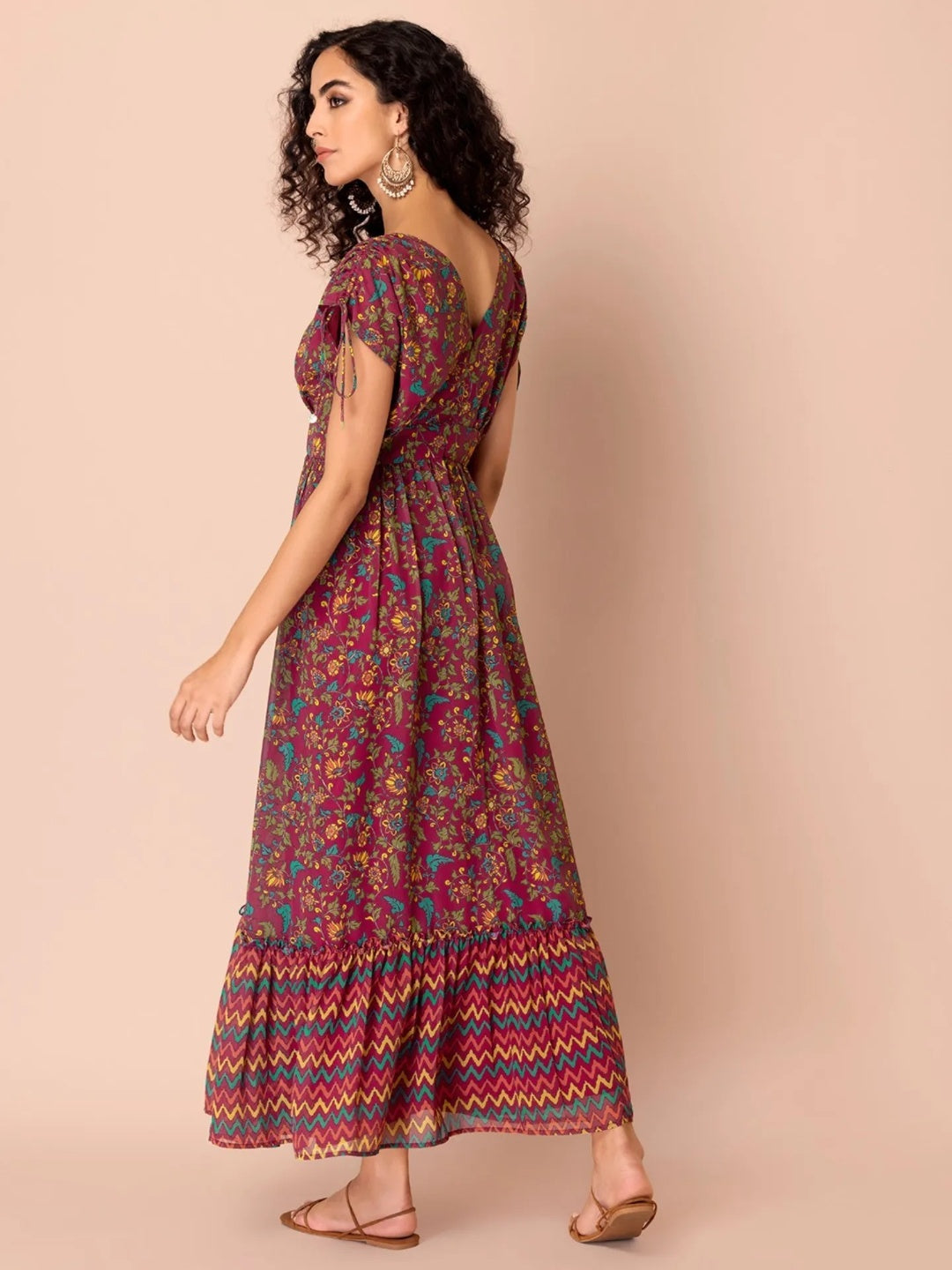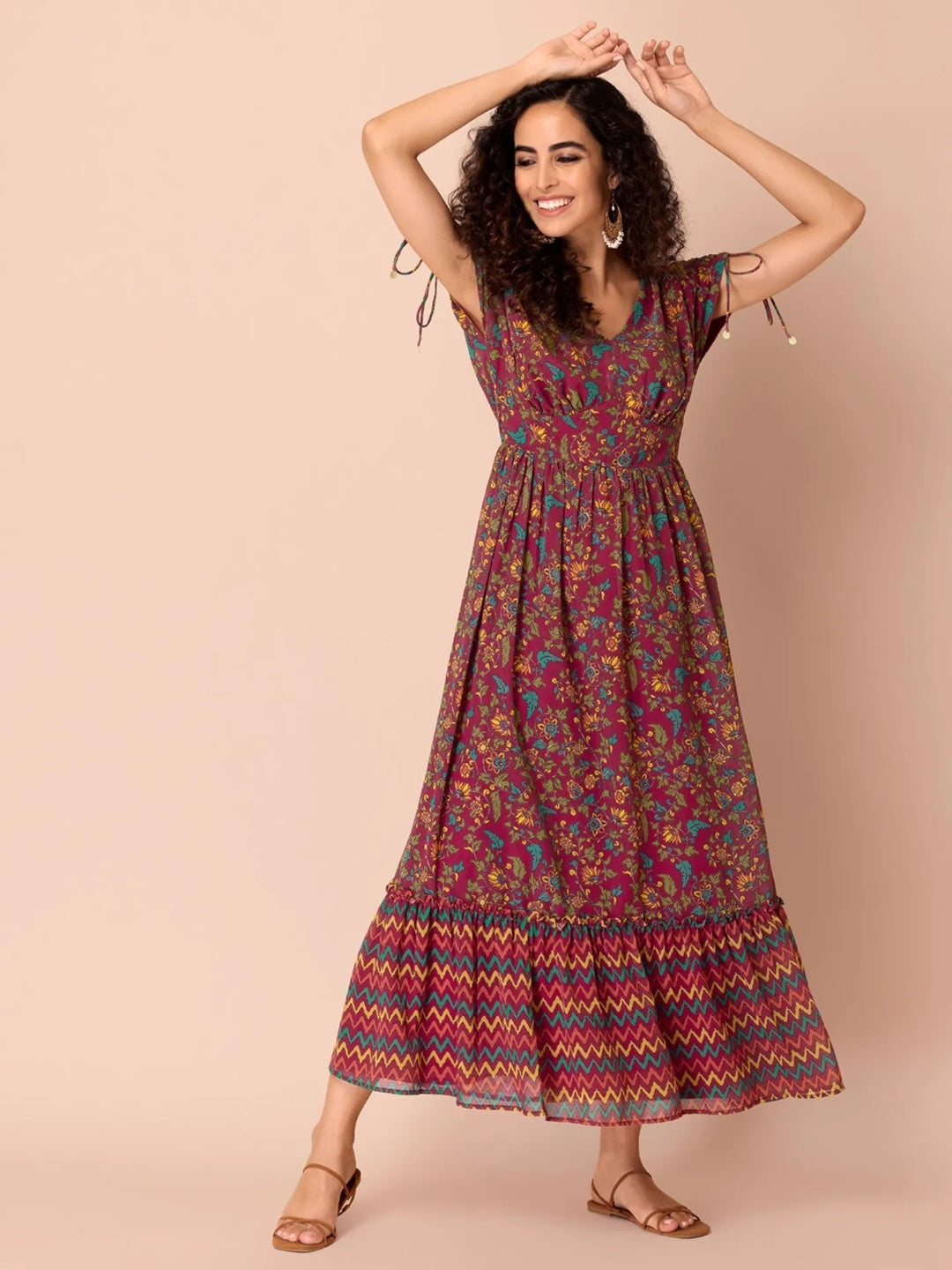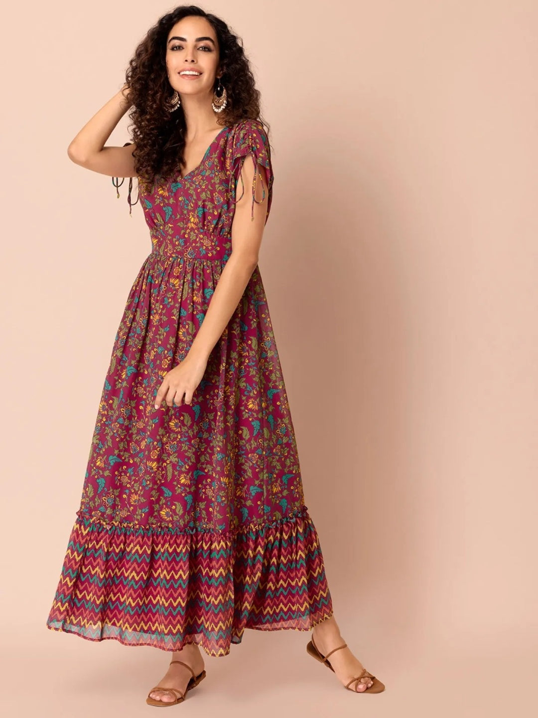 Look stunning as you wear this pink mini dress from Navaani. Crafted using georgette material, it features a half sleeves and stylish design which gives an elegant finish to your look. Style it up with a pair of heels and designer potli to complete the look.