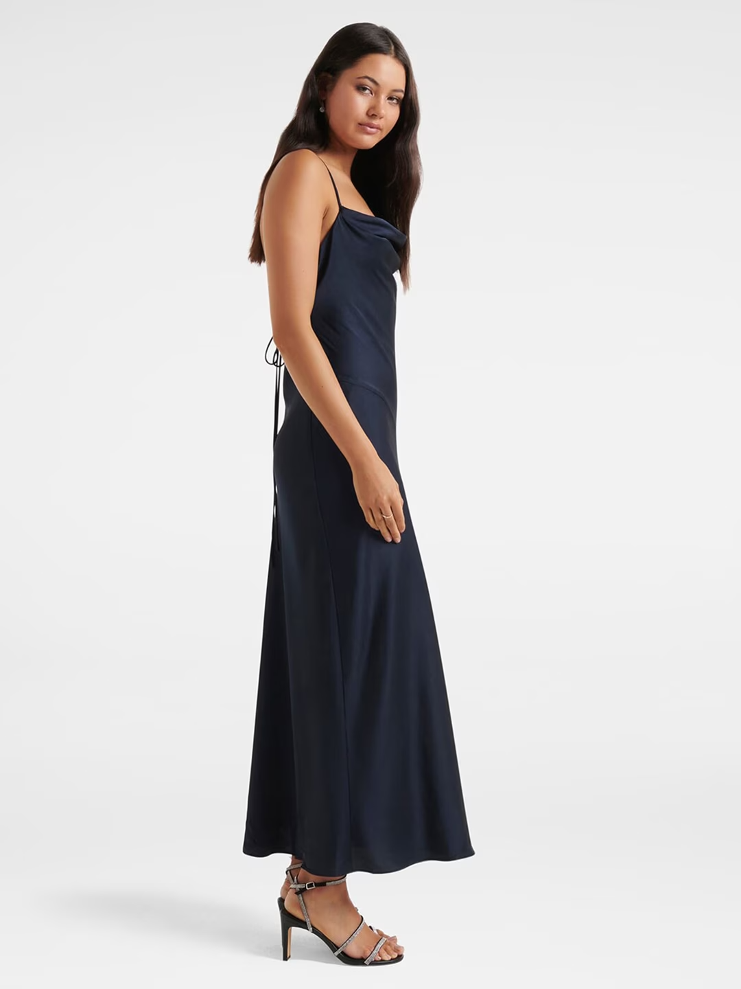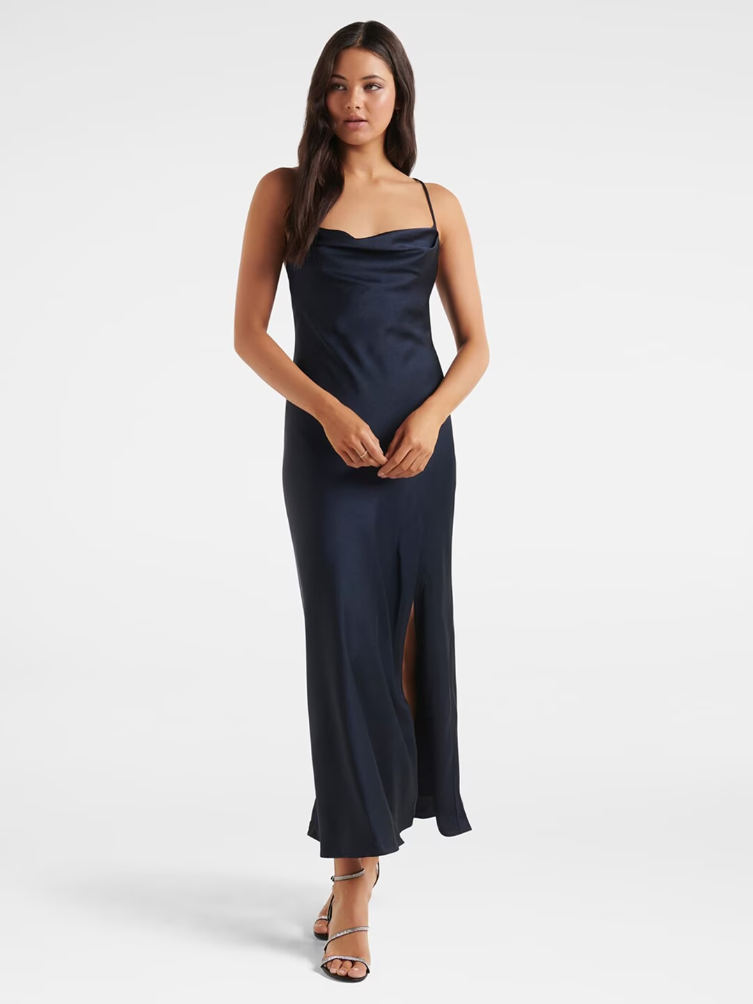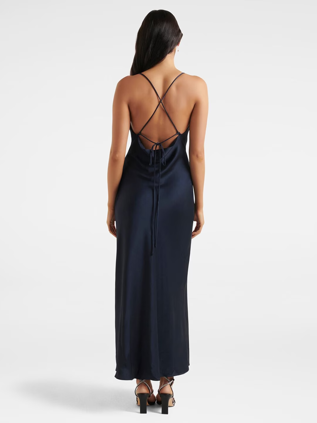 - Navy blue solid maxi dress