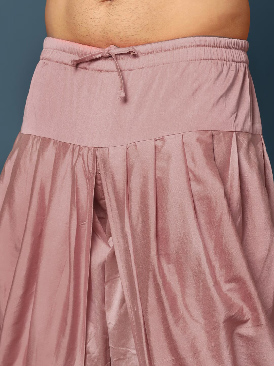 - Pink solid dhoti pant, has an elasticated waistband with drawstring closure