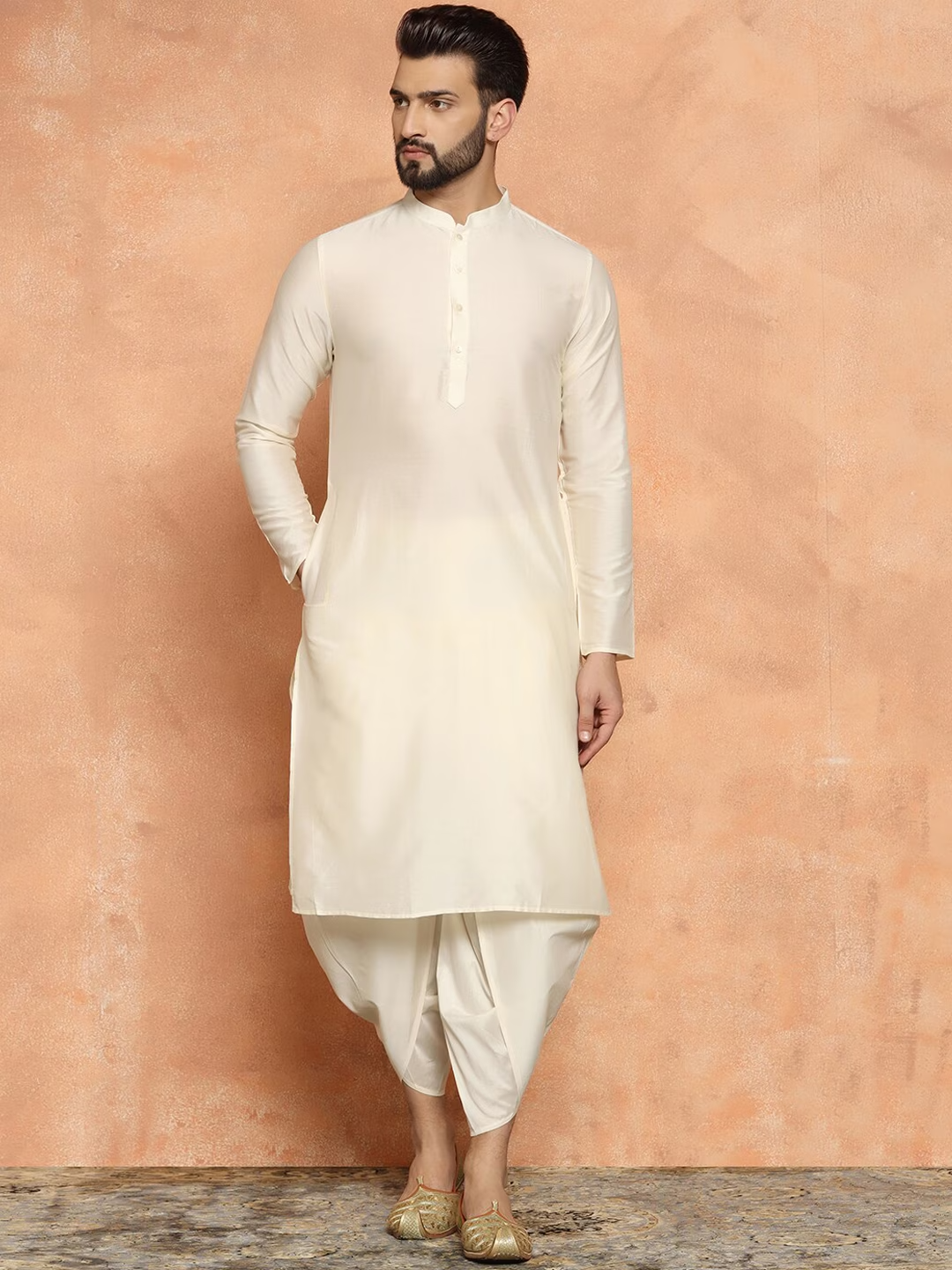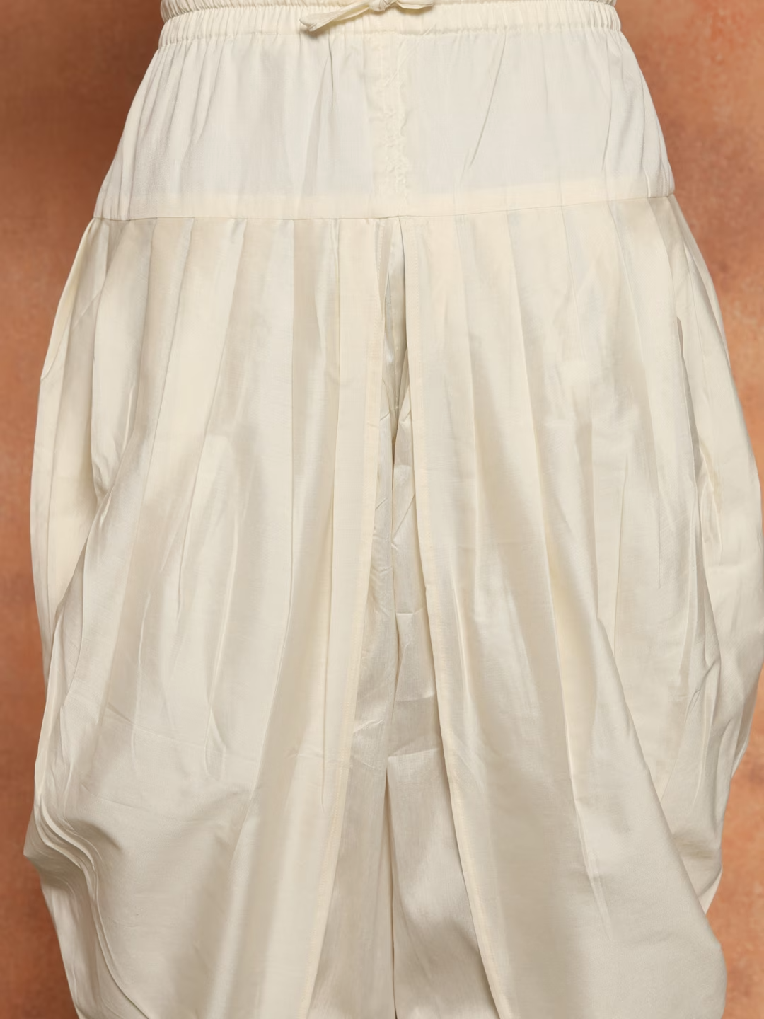 - Off-White solid Dhoti pant, has an elasticated waistband with draw-string closure
